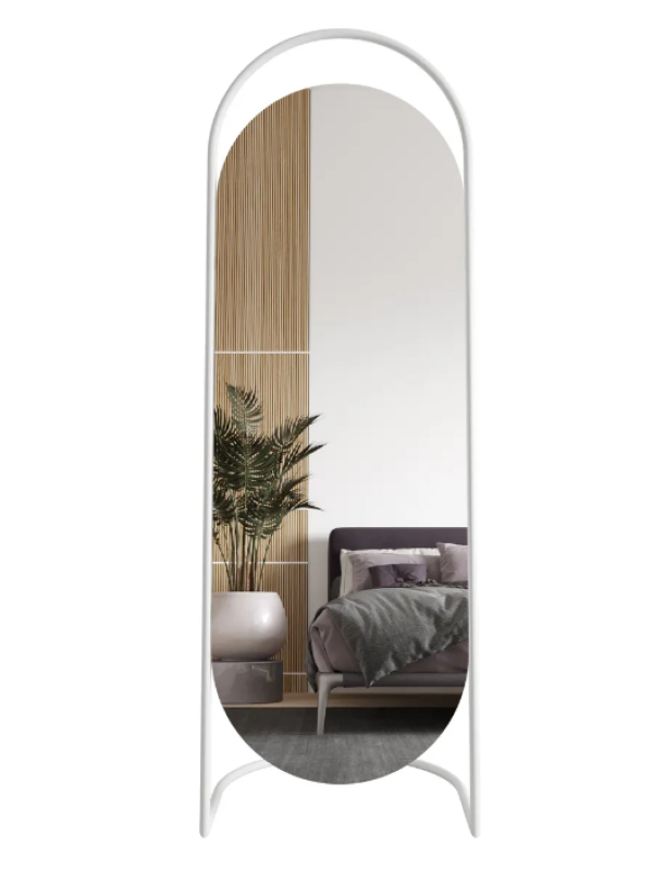 Зеркало «Queen». Артикул GMZ-01-1/2/3 Дизайнерское напольное зеркало в полный рост в металлической овальной раме ручной работы выполнено в минималистичном стиле. Простая изысканность форм и современный дизайн делает его уместным практически в любом интерьере. Оно может быть установлено в спальне, прихожей, гостиной, где за счёт своих внушительных размеров способно расширить пространство и создать иллюзию источника освещения. Зеркальное полотно изготовлено известным бельгийским производителем AGC и воплощает в себе старинные европейские традиции в совокупности с новейшими технологиями изготовления стекла. Наклон зеркала оптимальный фиксированный, что позволяет отражать любой рост.Характеристики:– профиль рамы – труба, диаметром 20 мм; – габариты – 1650х540х400 мм; – размер зеркального полотна – 1350х500 мм, толщина – 4 мм; – вес – 11 кг; – устойчивая двухслойная порошковая окраска; – возможные цвета – золотой, чёрный, белый.